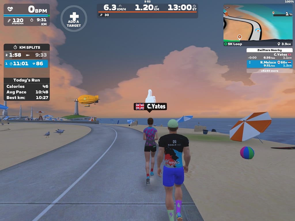 (19-apr-26) Ik loop (een beetje) hard op de loopband. (Dat bespaart me joelende kinderen en opgetrokken wenkbrauwen op straat.) Dat doe ik met het programma Zwift en mijn tabletcomputer: je ziet wie er voor of achter je aan het rennen is. Iedereen heeft een zelf samengestelde “avatar” en verschijnt in een of ander, uit een lange lijst te kiezen, fictief landschap. Veelal wielrenners (die moeten er trouwens voor betalen), maar ook hardlopers (zij mogen Zwift gratis gebruiken).